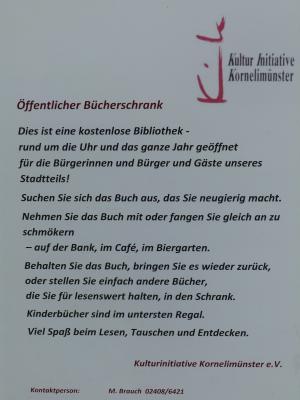 und gelangen am Ende des Abschnittes der Vennbahn, der Brand mit Kornelimünster verbindet, in Kontakt mit einem Zeugnis des Kornelimünsteraner Bildungsbürgertums: einem öffentlichen Bücherschrank mit mehreren Ausgaben von Reader's Digest und anderen Blüten der Weltliteratur.