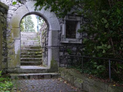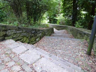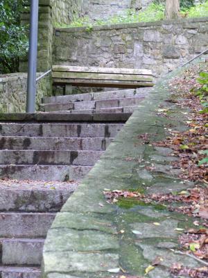 Der Weg hinauf zur Stephanskirche, der ehemaligen Mutterpfarre des Münsterländchens, führt einige Stufen hinauf. Eine Bank lädt zum Verweilen ein.