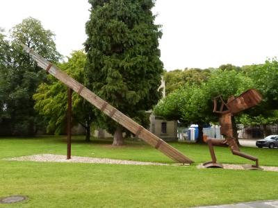 Symbolträchtig für das Vergehen der Reichsabtei und des Zentralarchivs ist die Gartenkunst, ich nehme an daß es sich um Ikarus handelt: